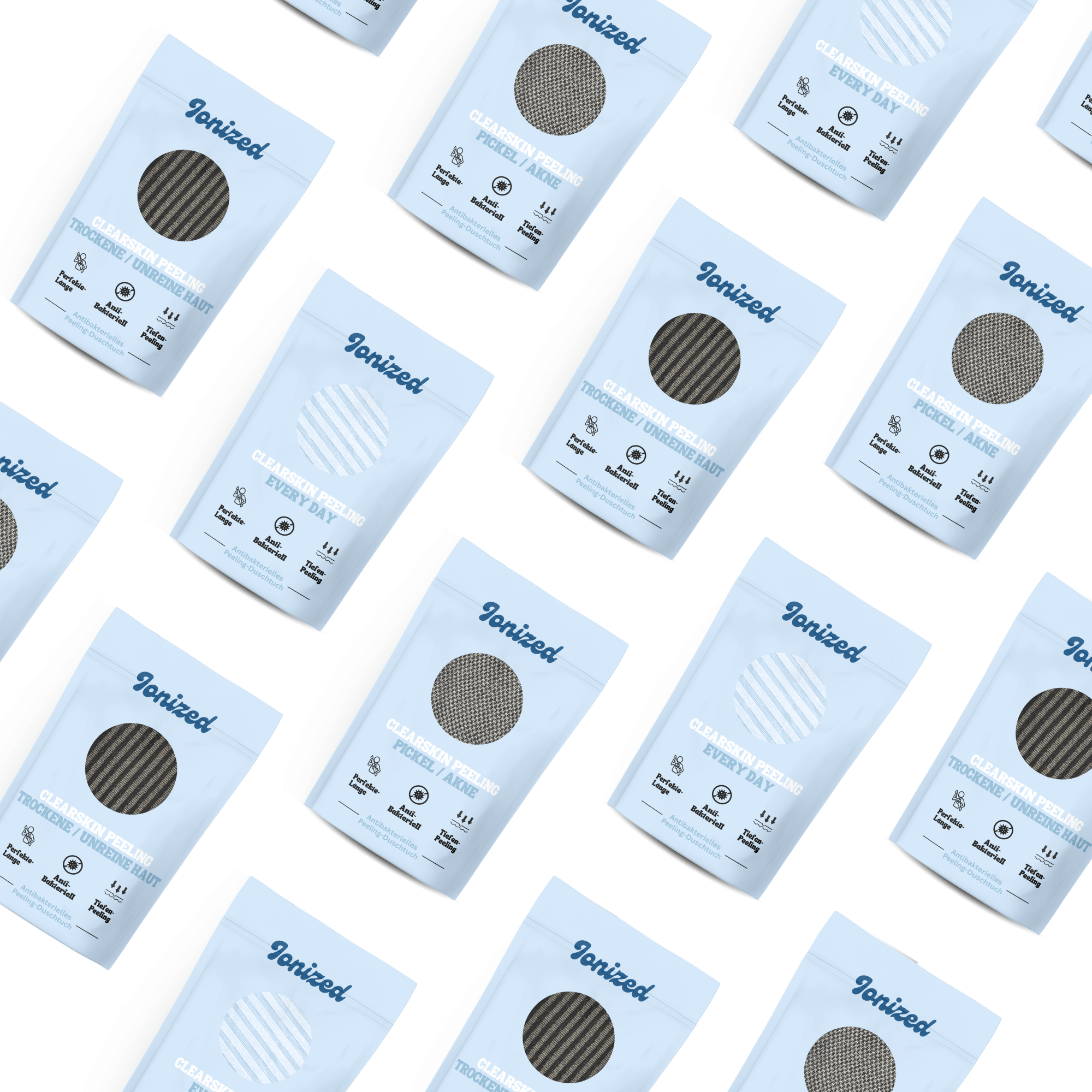 Die Ionized™ ClearSkin Routine umfasst 3 Peeling-Duschtücher – vom sanften Everyday-Tuch für glatte Haut, über das mittlere Tuch gegen trockene & unreine Haut bis hin zum intensiven Anti-Pickel-Tuch für Akne & hartnäckige Verhornungen. Gemeinsam decken sie jedes Hautproblem ab und sorgen für ein rundum reines Hautbild.