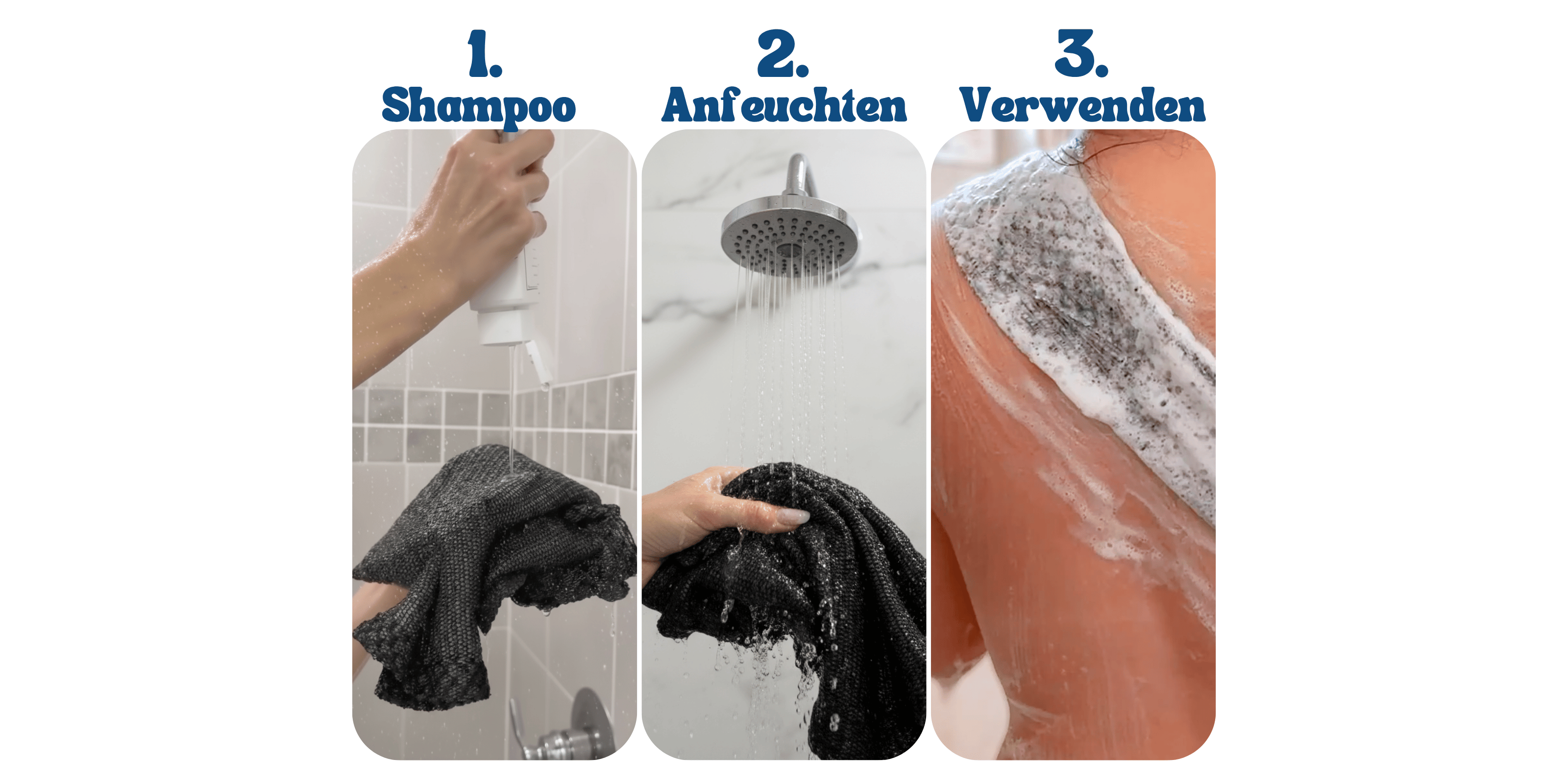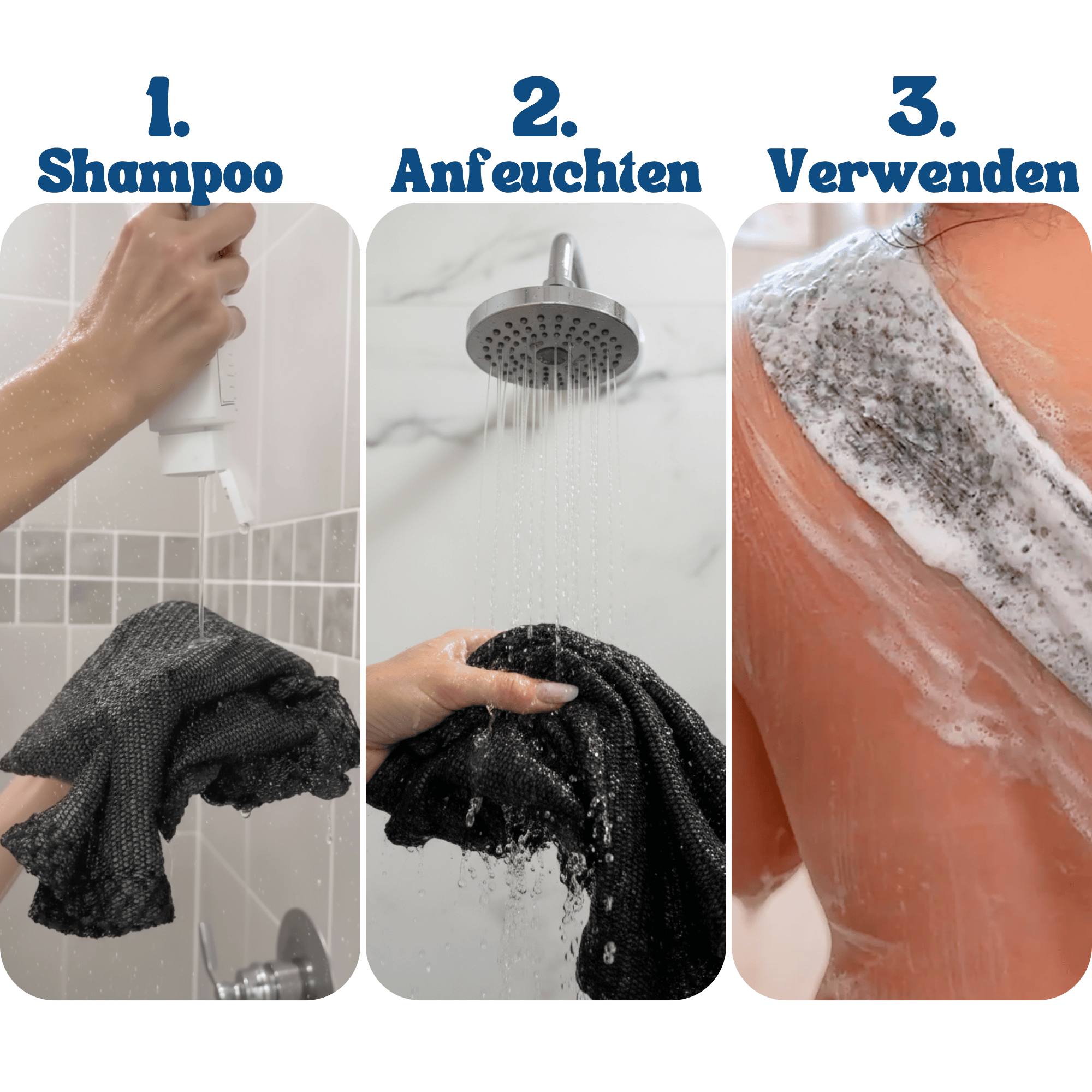 So benutzt du dein Ionized Peeling Duschtuch