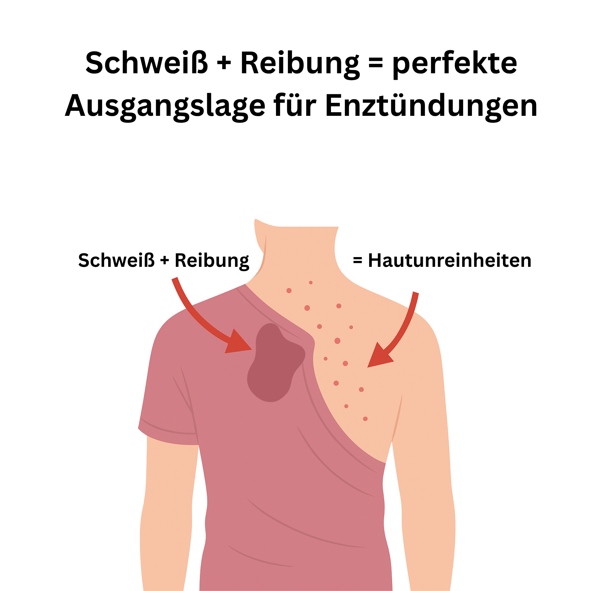Wenn sich Schweiß auf dem Rücken sammelt und Kleidung ständig darüber reibt, werden Schmutz, Talg und Bakterien tiefer in die Haut gedrückt. Die Poren können sich nicht richtig öffnen und verstopfen immer schneller. Genau deshalb entstehen gerade bei sportlich aktiven Menschen so häufig neue Pickel und Entzündungen am Rücken.