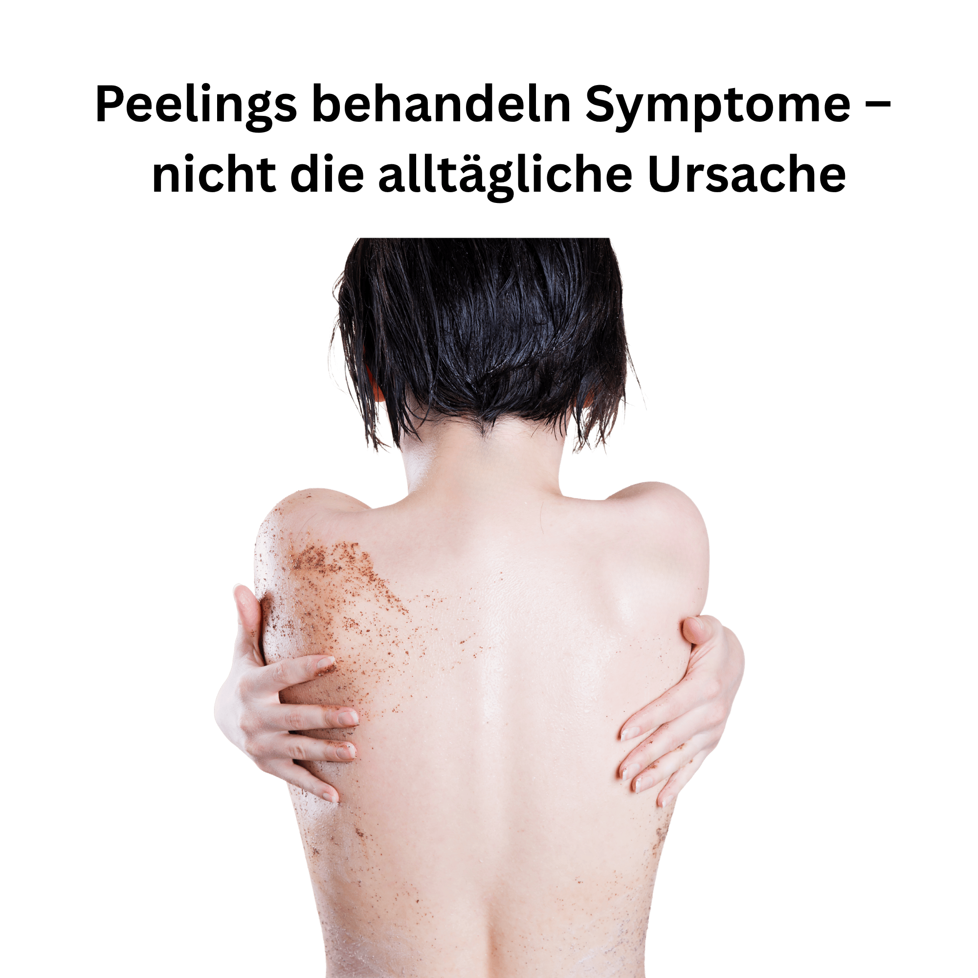 Chemische Peelings können zwar abgestorbene Hautschuppen entfernen, werden aber nur ein- bis zweimal pro Woche angewendet. Das tägliche Problem – Schweiß, Talg und Schmutz, die sich jeden Tag am Rücken ansammeln bleibt dadurch weiterhin bestehen. So werden die Symptome kurz reduziert, aber die eigentliche Ursache für verstopfte Poren und neue Unreinheiten nicht verhindert.