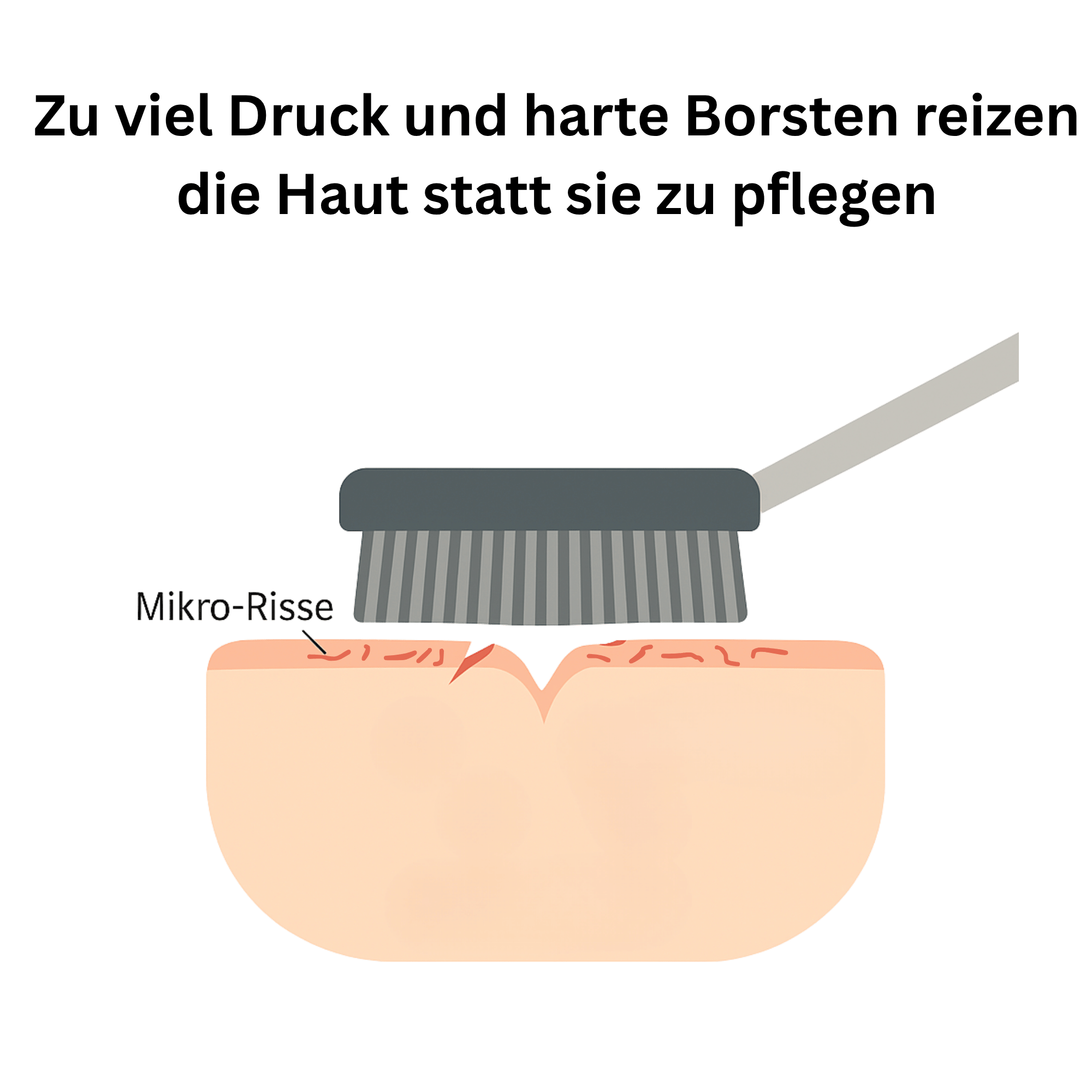 Harte Bürsten und starkes Schrubben erzeugen Mikroverletzungen, die man mit dem Auge oft gar nicht sieht. Diese kleinen Reizungen schwächen die Hautbarriere und machen die Rückenhaut empfindlicher. Dadurch kommt es schneller zu Rötungen, Irritationen und entzündlichen Pickeln.